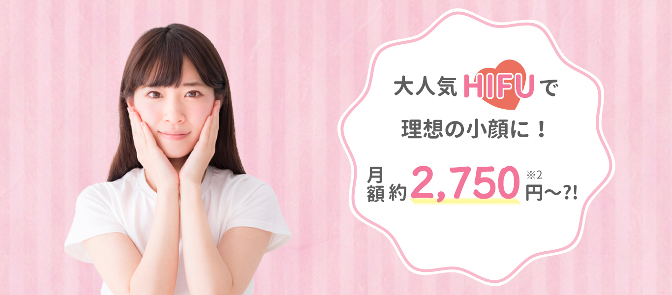※1 62部位全身脱毛3回月額: 約2,350円+HIFU3回月額: 約2,750円の20%OFF(当日契約に限る)=約4,070円月額(税込)