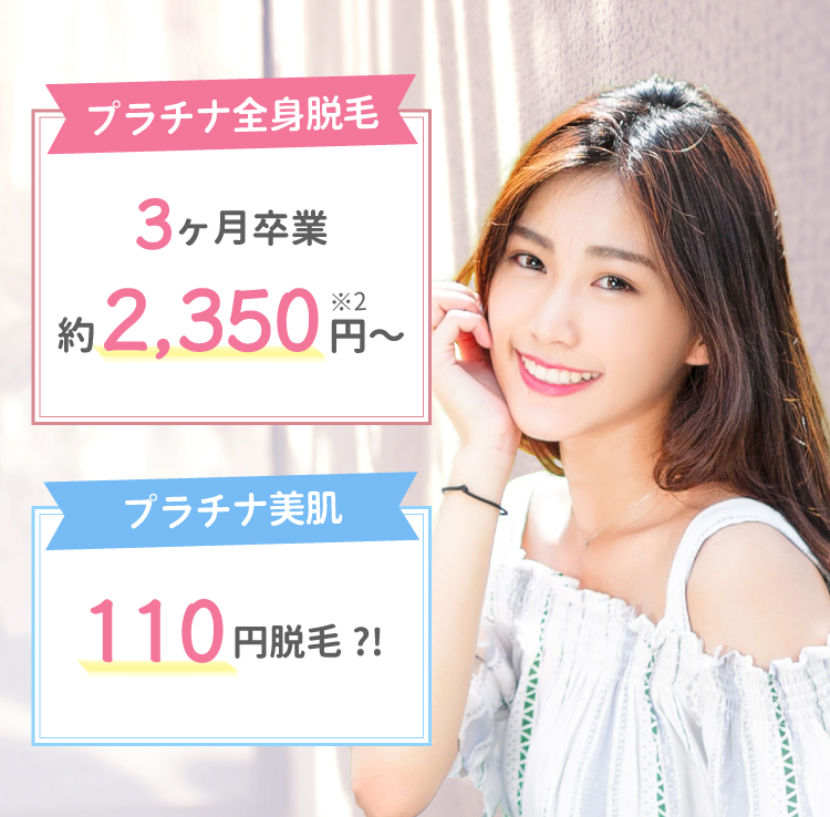 ※2 62部位全身脱毛3回月額: 約2,350円(税込)