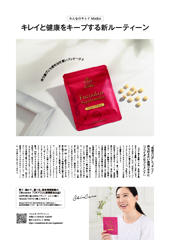海藻の表面を覆い、激しい潮の流れや外的刺激から海藻を守っているネバネバ成分である"メカブ"由来のフコイダン配合サプリメントが誕生。